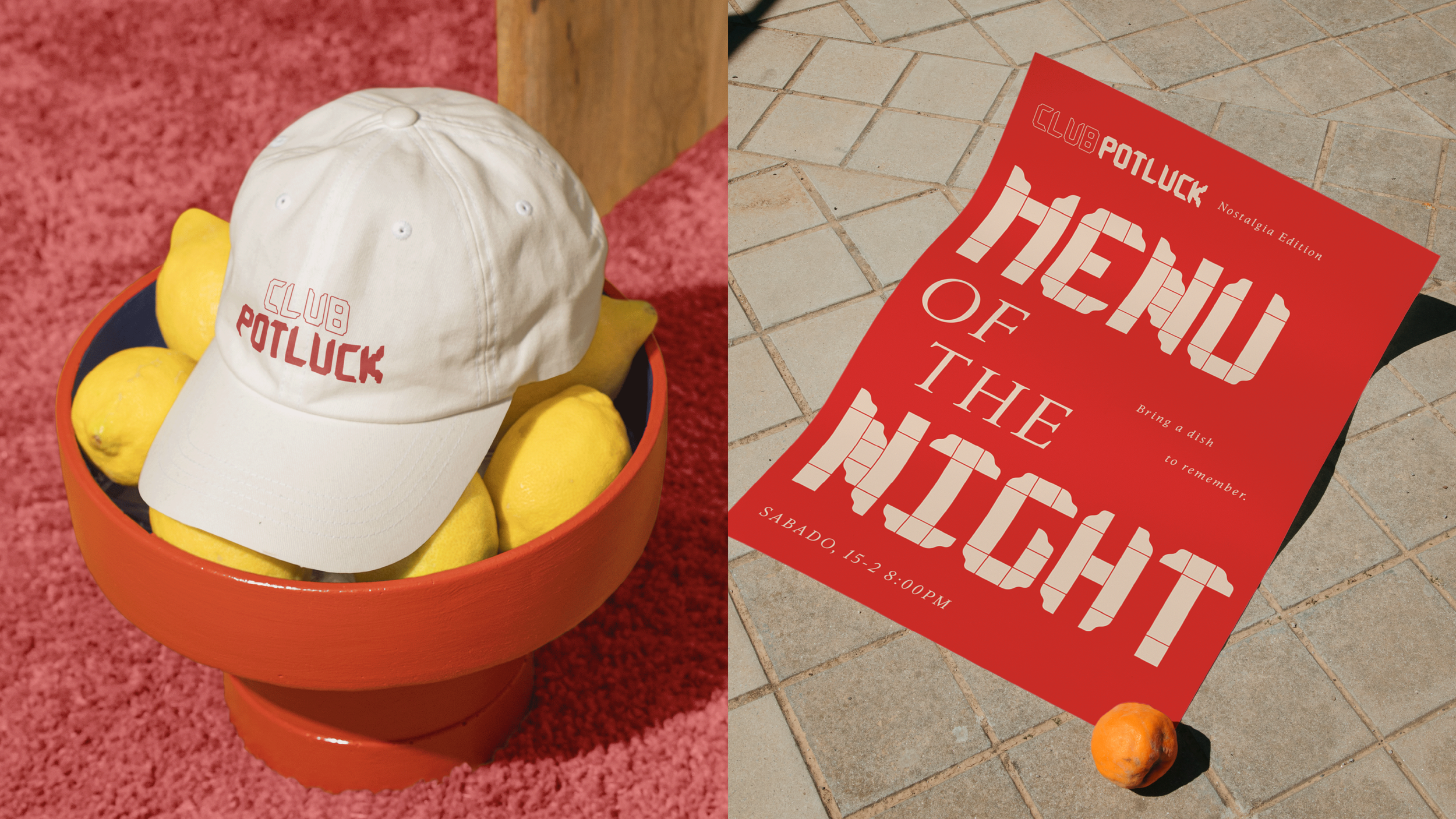 Club Potluck is a concept dinner series that invites friends and strangers to come together to build a dinner in community. The design for the first dinner was born from a modular typeface I designed. The rounded corners and square modules are reminiscent of a classic picnic table — so red and cream colors felt both natural and comforting to pair with it. Club Potluck’s first dinner was all about nostalgia after all.